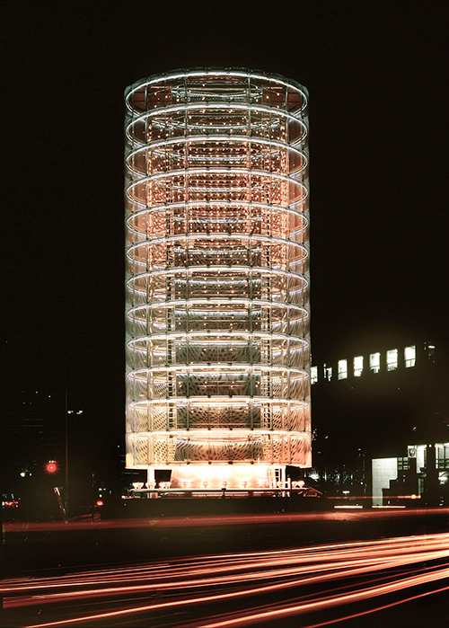 The Tower of Winds was completed in 1986, and I don't think it's wrong to say it was prophetic of things to come. Interest in responsive, sensor-laden architecture is higher than ever--it's become one critical piece of the "smart city" concept (still pretty nebulous, this concept, although some people estimate that spending on "smart urban services" has reached around $400 billion per year). Things like responsive lighting to have even trickled down to the consumer market: you can go to Best Buy and get a Hue lightbulb, and if you want it to turn blue when it starts to rain outside, it's just a matter of clicking this button. But this was pretty new terrain for 1987, when Ito's techniques were not adopted widely by either urbanists or by artists.